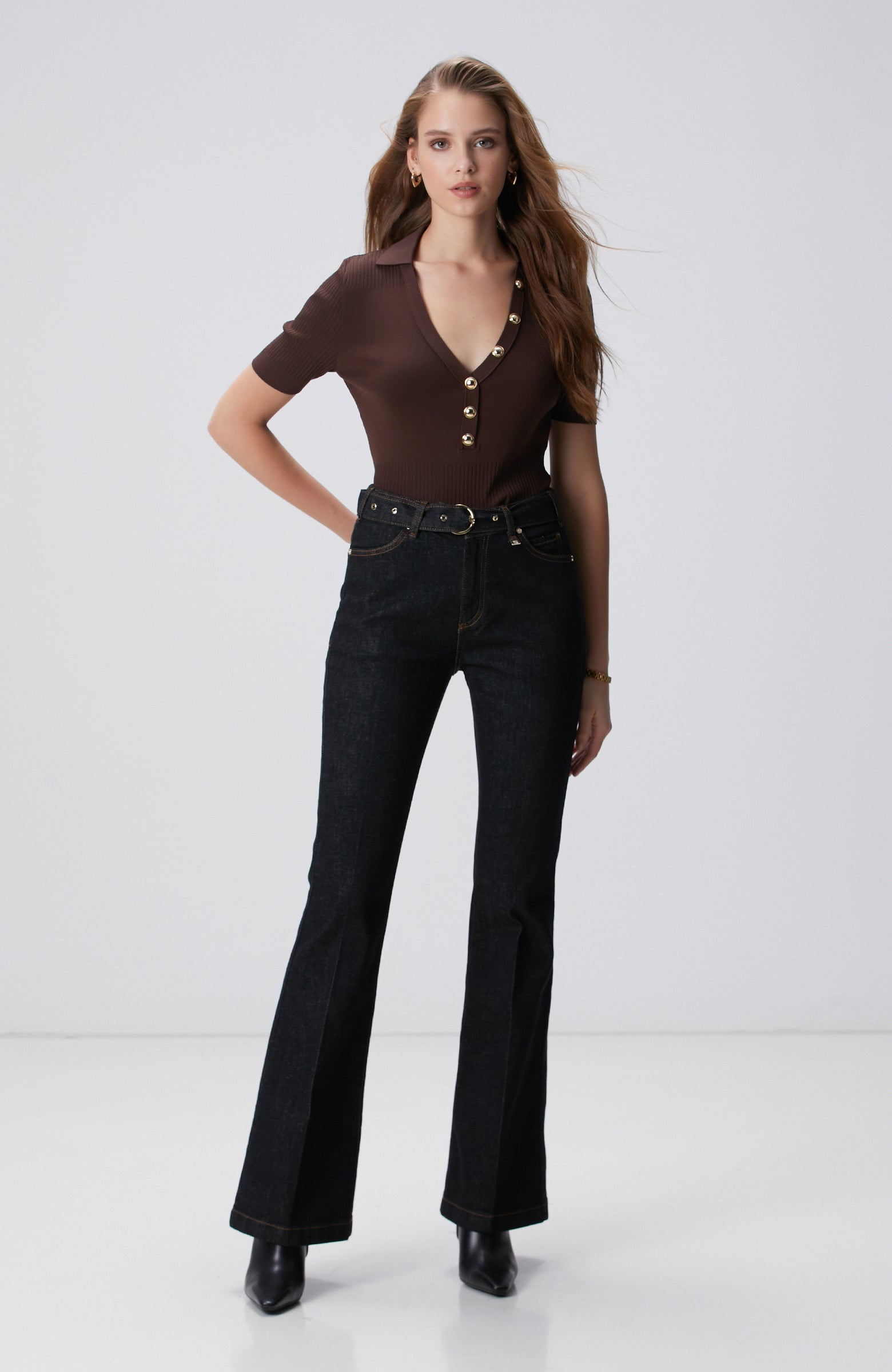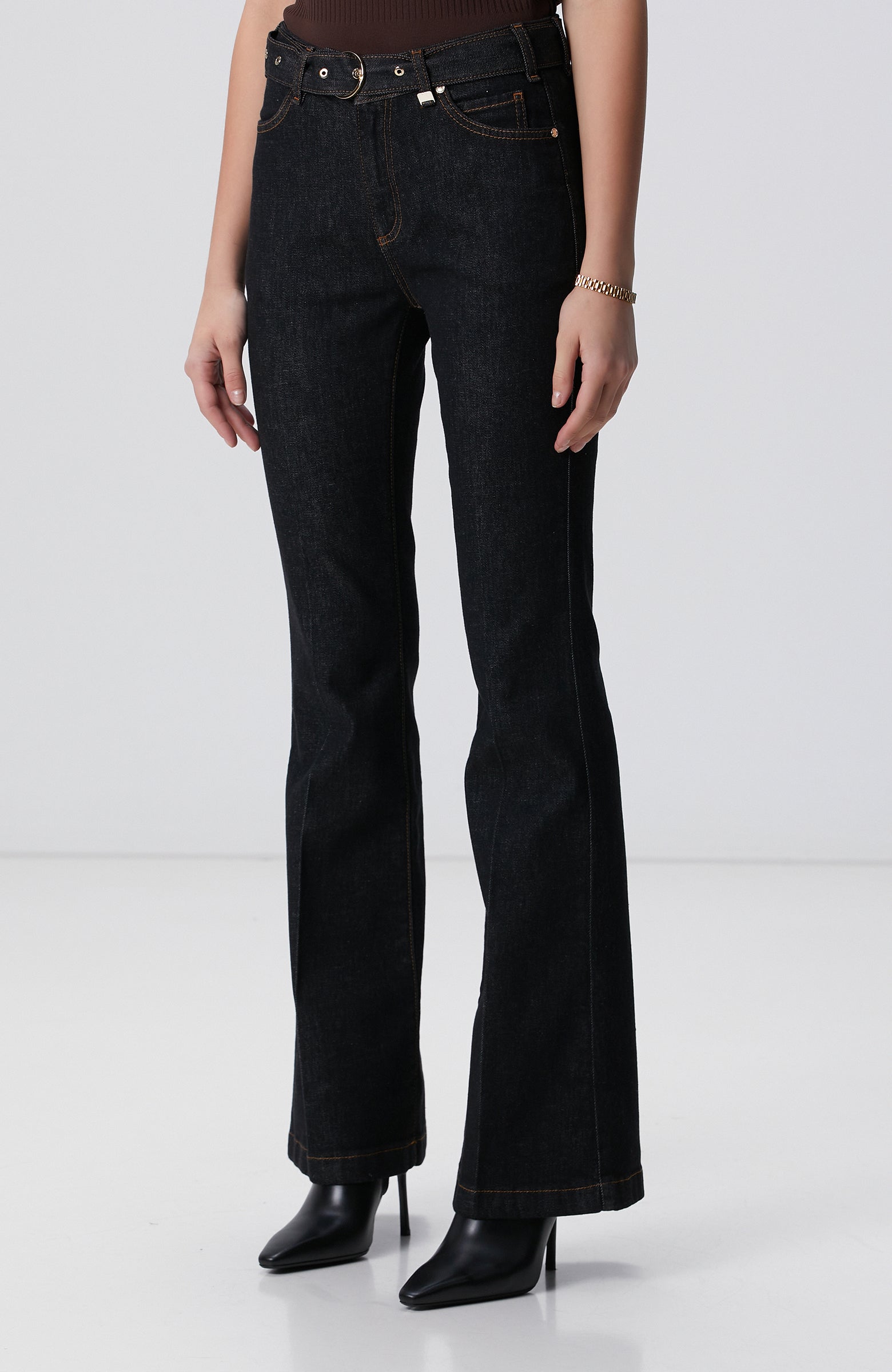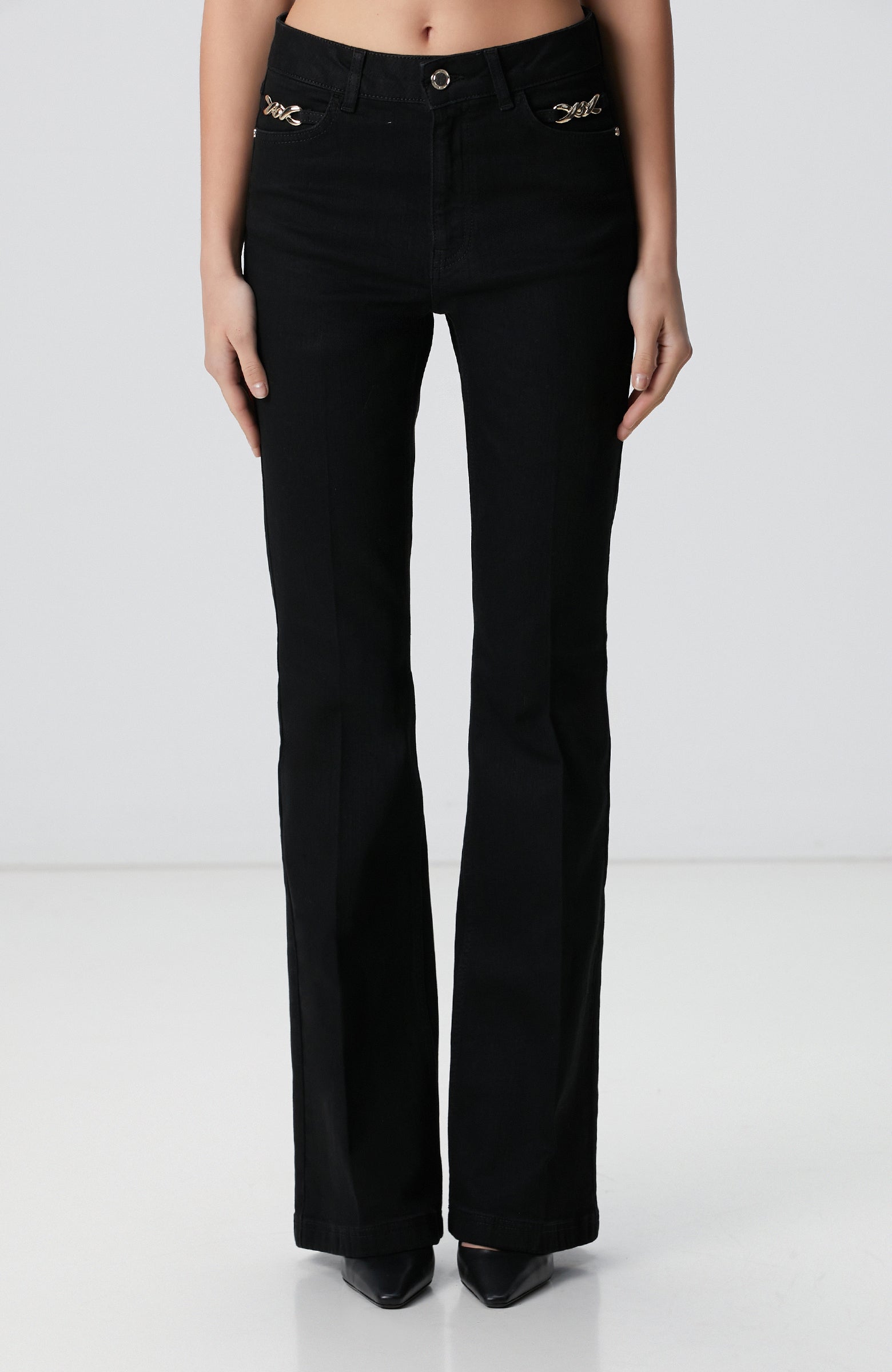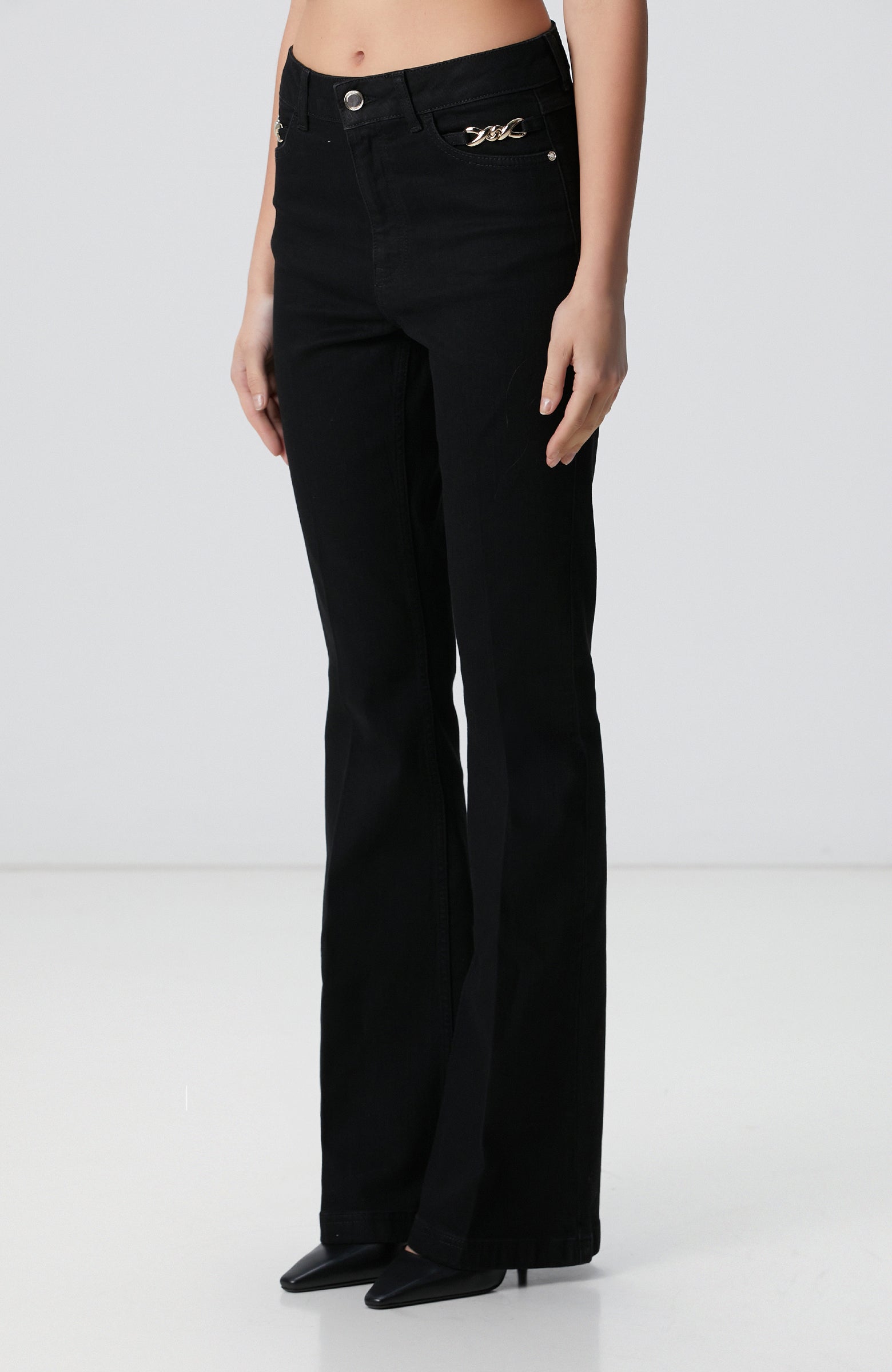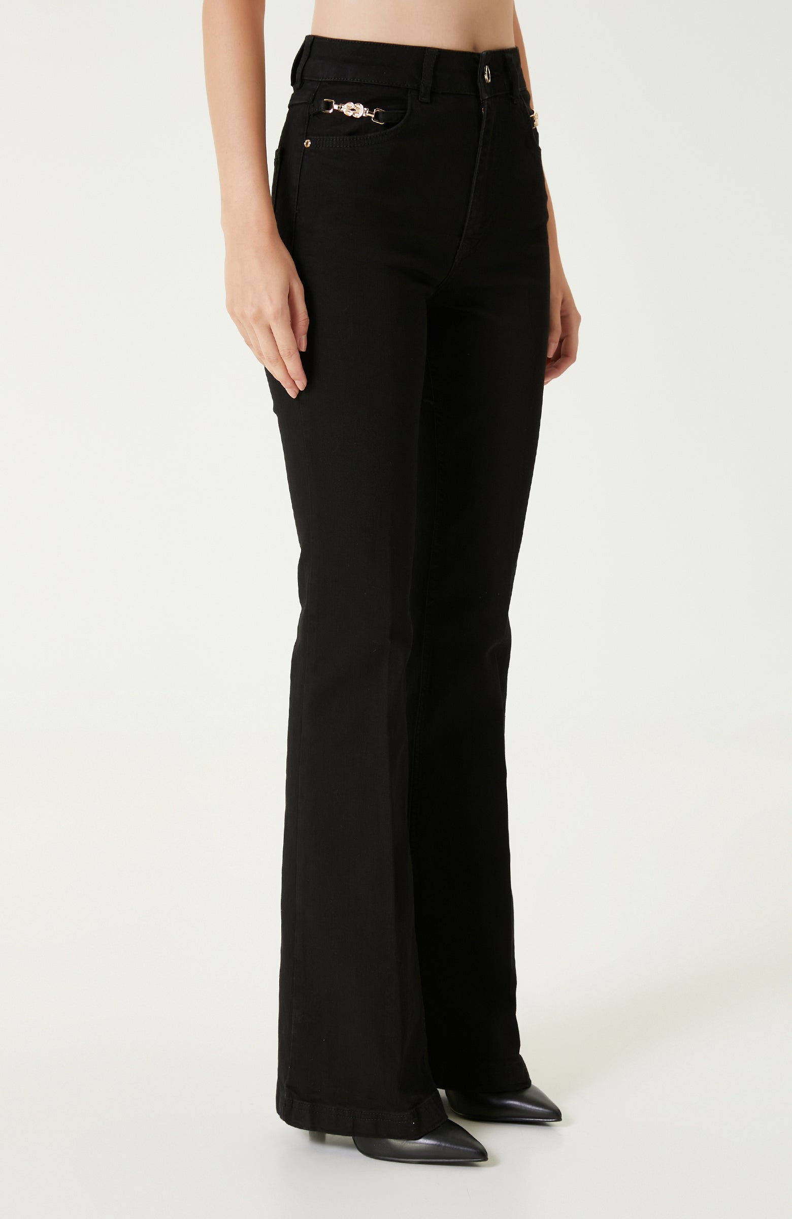 WOMEN'S Black Accessory Flare Fit Denim Pants