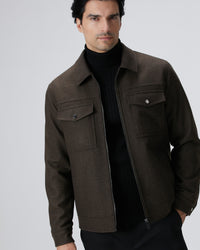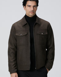 65% Wool; 30% Polyester; 5% Other Fabric; Comfort Fit; Shirt Collar; Long Sleeve; Wool Blend; Woven Jacket; Diagonal Pattern; Side Pockets