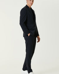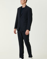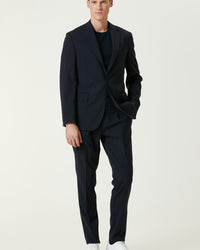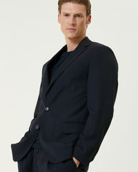 100% Wool;Slim Fit; Mono collar; double slot; wool suit; Laced mid-waist; straight leg; flap pocket SKU: 1090976-291